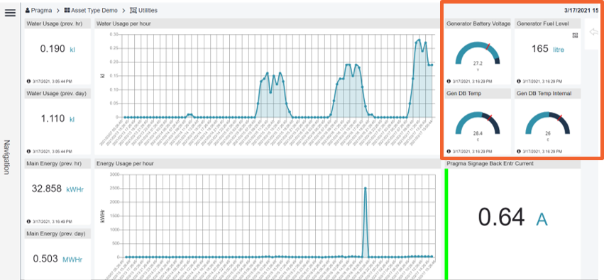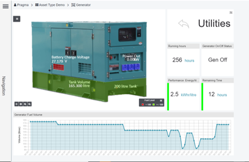 Pragma developed a custom dashboard with specific graphs and dials to reflect the real-time data visually. An early warning system was developed with specific parameters, levels and triggers to notify the relevant person (Pragma’s facilities manager) via SMS, email or automated work order. For example, if the fuel level drops below a certain point (eg 100 litres) an automated work order is generated via the enterprise asset management system (EAMS). An interface between the cloud and the EAMS eliminates the need for a person to walk around and manually capture the information daily. The frequency of the information gathered can easily be adjusted from twice a day to hourly if needed.