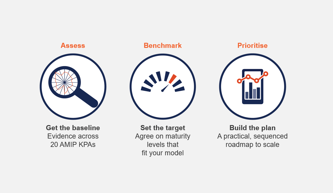 Pragma helps OEMs assess their current ability to support service agreements. Using our structured Asset Management Improvement Plan (AMIP), we: