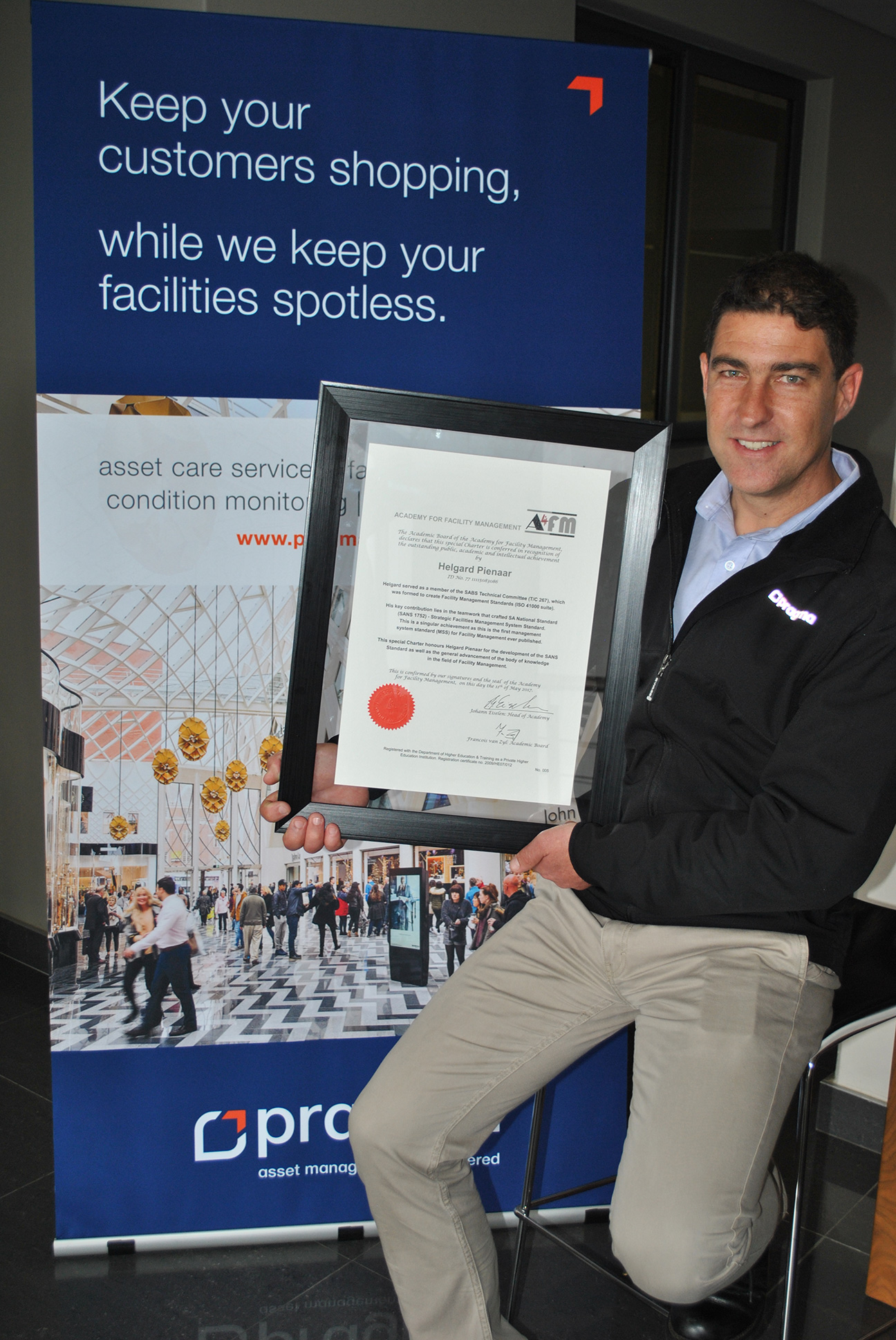 Pragma Engineer, Helgard Pienaar, has been honoured with a special charter from the Academy for Facility Management for his contribution to the development of the Facility Management Standards (ISO 41000 suite).